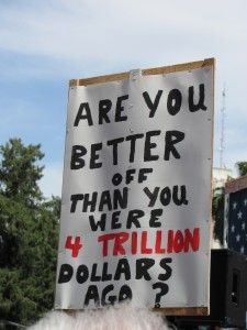 The signs were creative, funny, mad-as-hell and on-message. My favorite? As tough as the choice was, “Party like a bailed out banker” takes the cake.