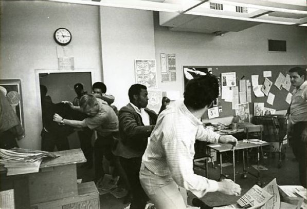 Ludlow, now retired after a career at both the Examiner and the Chronicle, recalls that BSU member George Murray and several others stood by the door to block the exit while the rest attacked the staff, overturned desks and threw down typewriters.