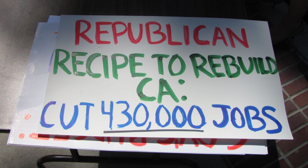 Empty pie shells represent Republicans' plan to cut jobs (guvmint jobs of course). Of course, everyone preferred the pies filled with chocolatey budgety goodness.