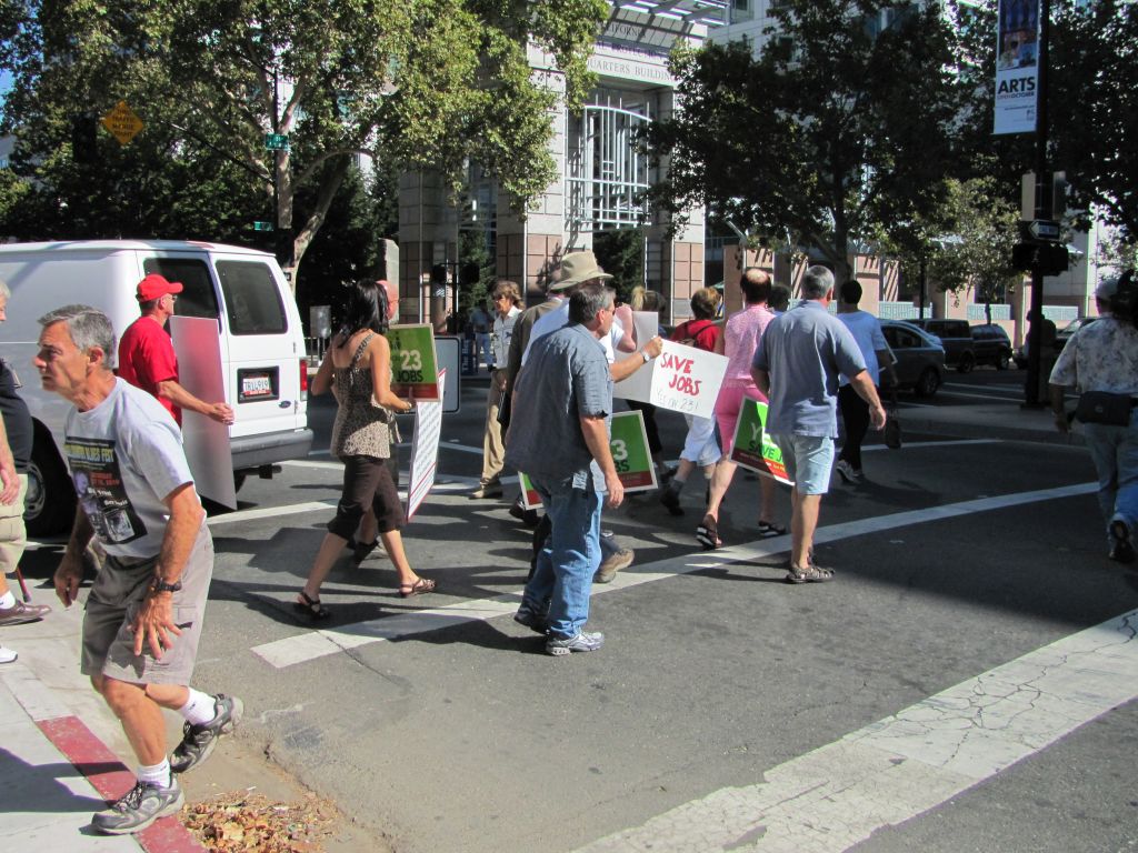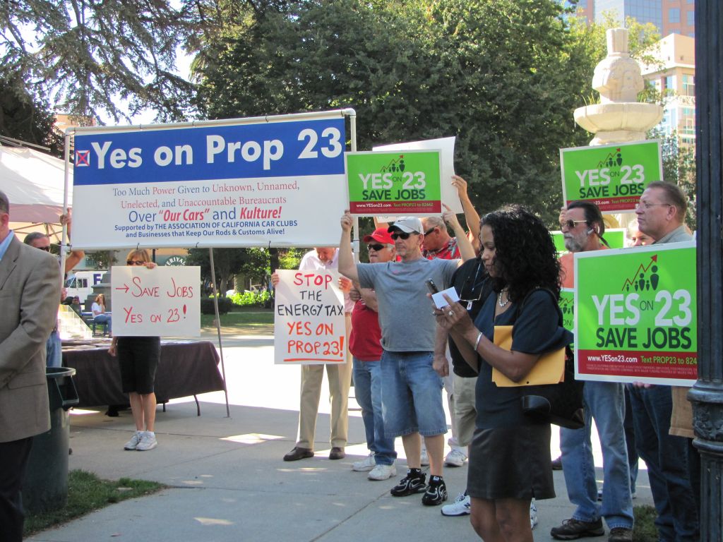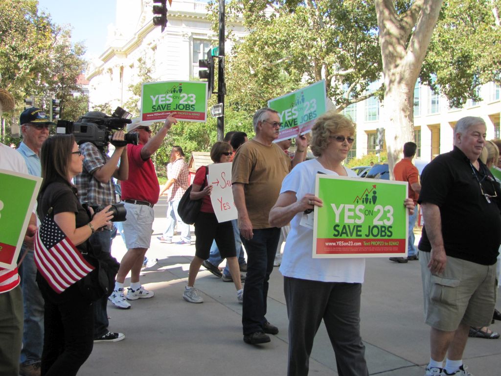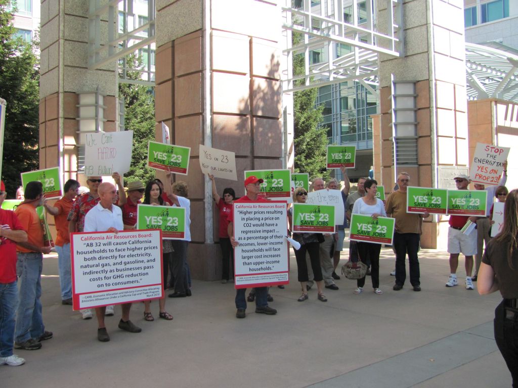 While Prop 23 supporters chanted “What do we want – Jobs Now,” I overheard several CARB employees talking as they walked away from the building. “What do they think will happen to us?” asked one man to his colleague. “Yeah, what about my job?” asked another.
