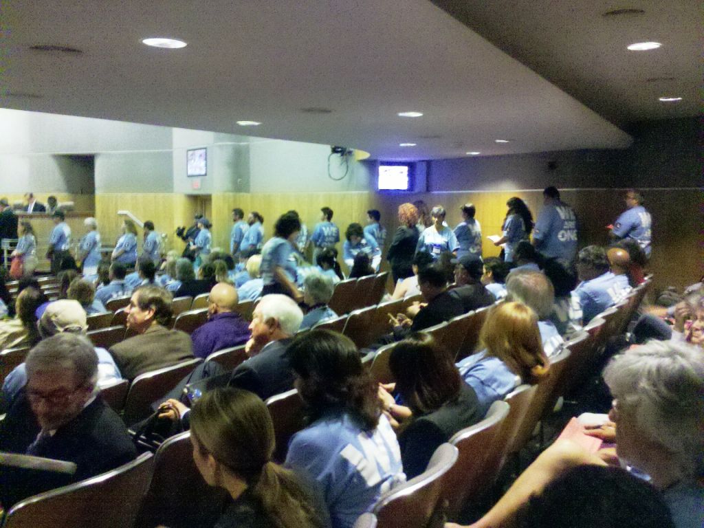 Despite being asked numerous times at the hearing to give name and affiliation only when testifying in support of the bills, the hundreds of teachers at the hearing tried to give speeches, and had to be interrupted by committee chairman Sen. Alan Lowenthal for failing to follow directions.