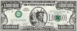 Add six more zeros to the million dollar bill for $1 trillion. (Here is what $1 trillion looks like[11]…)