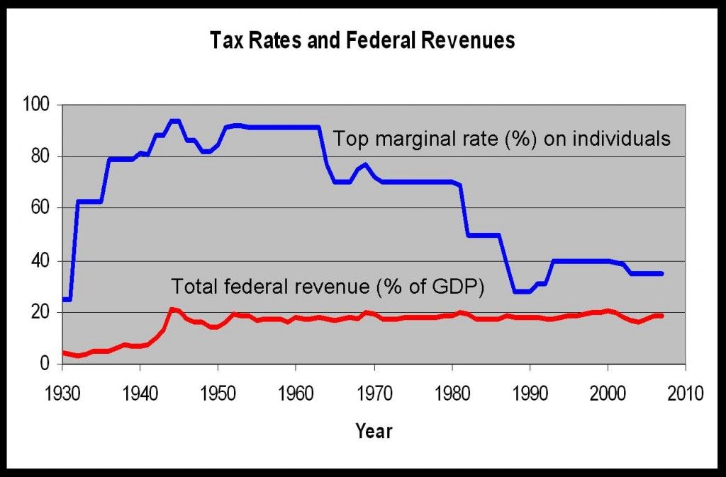 So Ryan’s 19 percent threshold is close to the maximum. Hiltzik’s idea that it could go higher is a an illusion. The most that can be wrung from the economy is 20 percent for federal taxation. Try to get more, and people just quit working and investing, or move their money overseas.