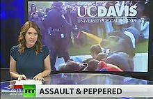 “During peacefully Occupy Movement, police came in to tear down tents and proceeded to arrest students who stood in their way,” the written explanation on the video states. “Once students peacefully demanded the release of the arrested, a police officer unnecessarily pepper sprays the students to open a path for the rest of the officers.”