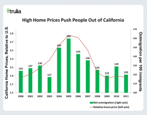 That is the conclusion of Jed Kolko, the chief economist for Trulia, an online home sales listing company. Kolko found that net California out-migration (those leaving minus those coming in) is higher for the working and middle class than it is for the wealthy. Kolko’s statistical analysis actually found that high-income households making $200,000 per year or more were holding steady in California.