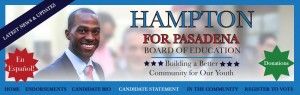 Hampton attributed his election to senior citizen turnout in his new district. He ran on a platform of developing innovative solutions to school district budget shortfalls. Hampton is married to Tara Gomez, PhD, an alumnus of UCLA and Cal-Tech.