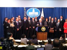 School superintendents from public school districts throughout the state joined the governor at the press conference.
